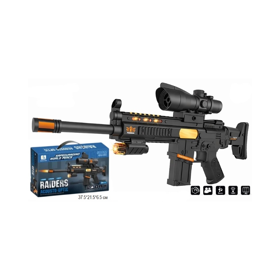 Оружие арт. DL-3303-1 Автомат с прицелом 50 см на батар. свет, звук в кор. 37,5*6,5*21,5