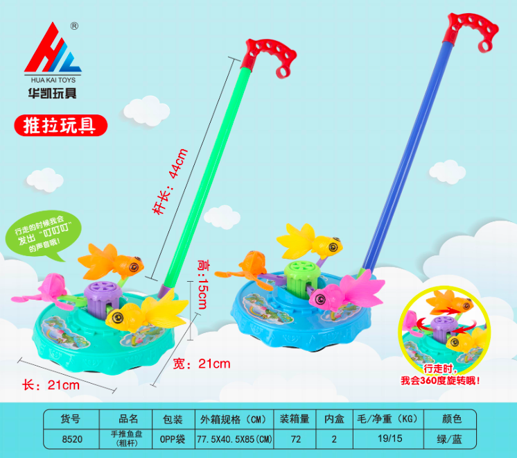 Каталка арт. 8520 Золотые рыбки с ручкой в пакете 44*21*21Каталка арт. 8520 Золотые рыбки с ручкой в пакете 44*21*21
