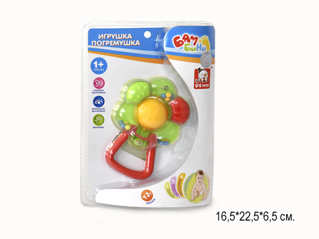 - Погремушка арт. 1493 Цветочек на листе_×Погремушка арт. 1493 Цветочек на листе_Особенностью этой погремушки-прорезывателя является ее особый неповерхностный способ окрашивания, безопасный для малыша. Погремушка имеет приятную расцветку и гладкие контуры. Посредством игры с погремушкой развивается мелкая моторика и воображение.