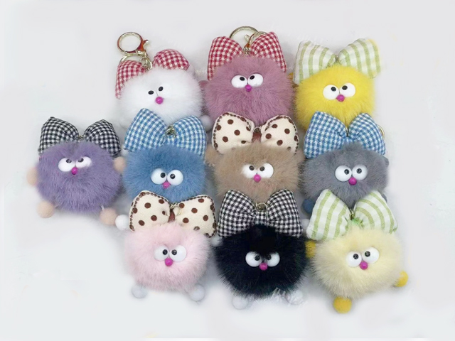 им Шарик арт. 409-209 Глазастик с бантом в клетку/в горох, цвета микс брелок в пак.