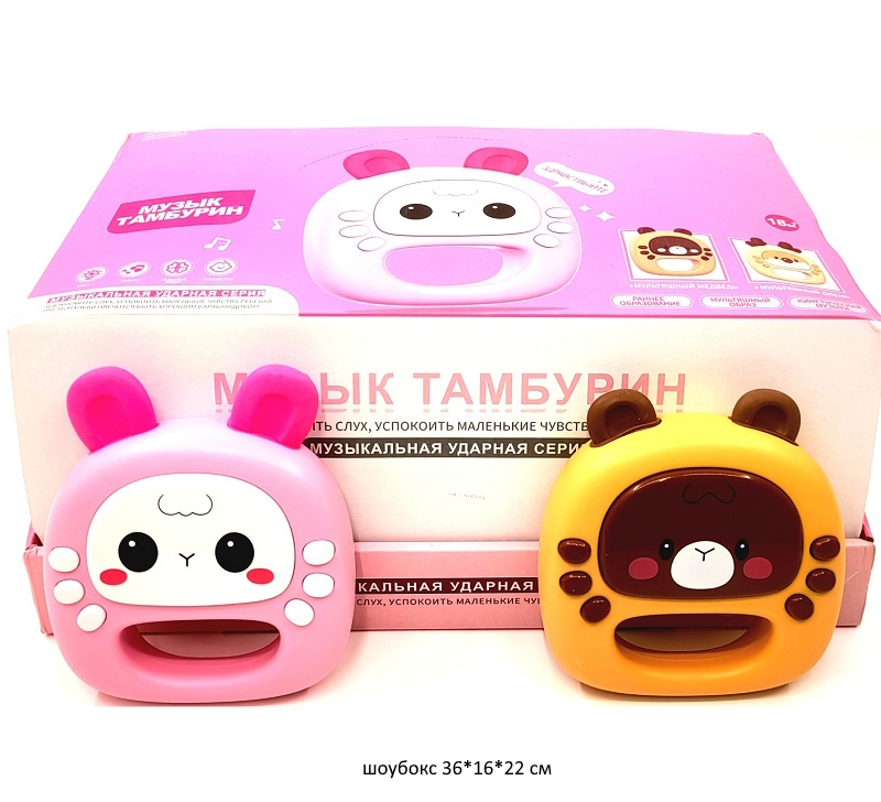 Игрушка арт. 335-80 Развив. "Зверюшка-тамбурин" ассорти на бат. муз. (12 шт.) шоубокс_