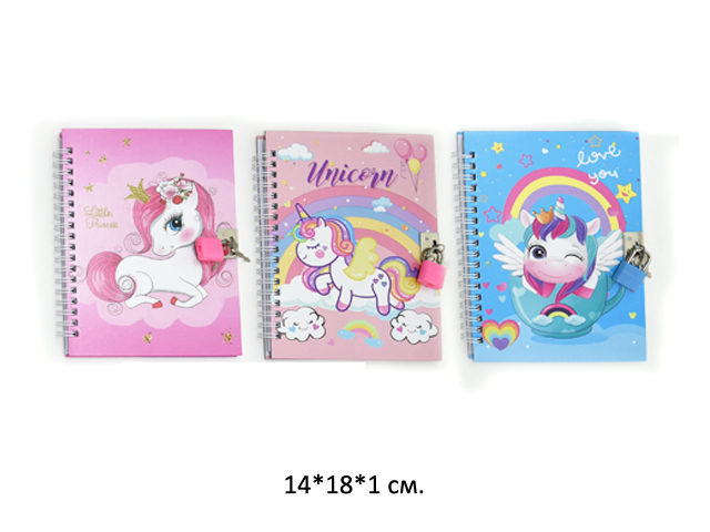 Блокнот арт. 150-2/GK3120-709 "Единорог" с замком в пак.