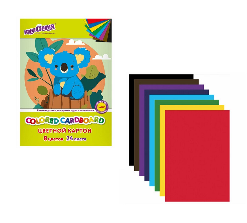 кс_Картон цветной арт. 115640 А4 немелованный, 24л. 8цв. в папке ЮНЛАНДИЯ 200х290мм КоалаФормат: А4