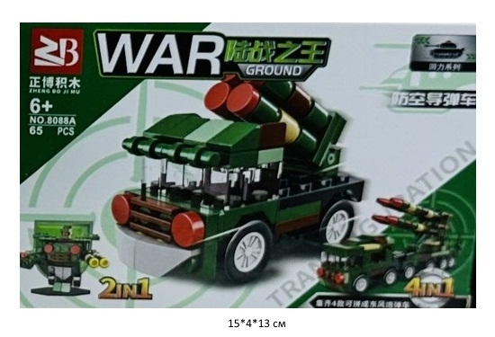 Конструктор арт. 1803-4" Воен. техника 38 дет. (8 шт.)/шоубокс 12,5*8,5*4,5/128шт.//бл./