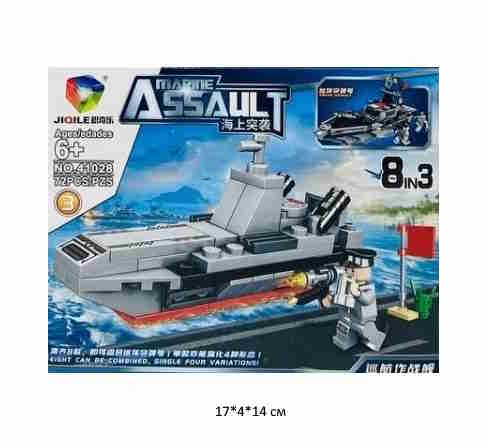 Конструктор арт. 41028-3 Военный корабль 72 дет. в кор.~