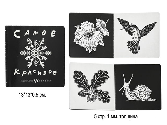 Книга "Самое красивое"Книга без текста и включает 10 картонных страниц с черно-белыми иллюстрациями.