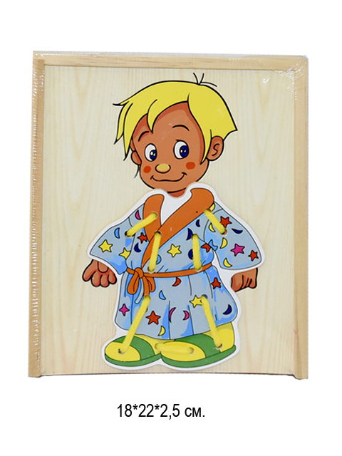 Деревянная игрушка арт. 13685R-2" Шнуровка "Мальчик" в пленкеОбучающая игрушка-шнуровка для малышей разовьет мелкую моторику, позволит интересно и с пользой провести время. В процессе игры у малыша развивается мелкая моторика, ловкость и координация движений.