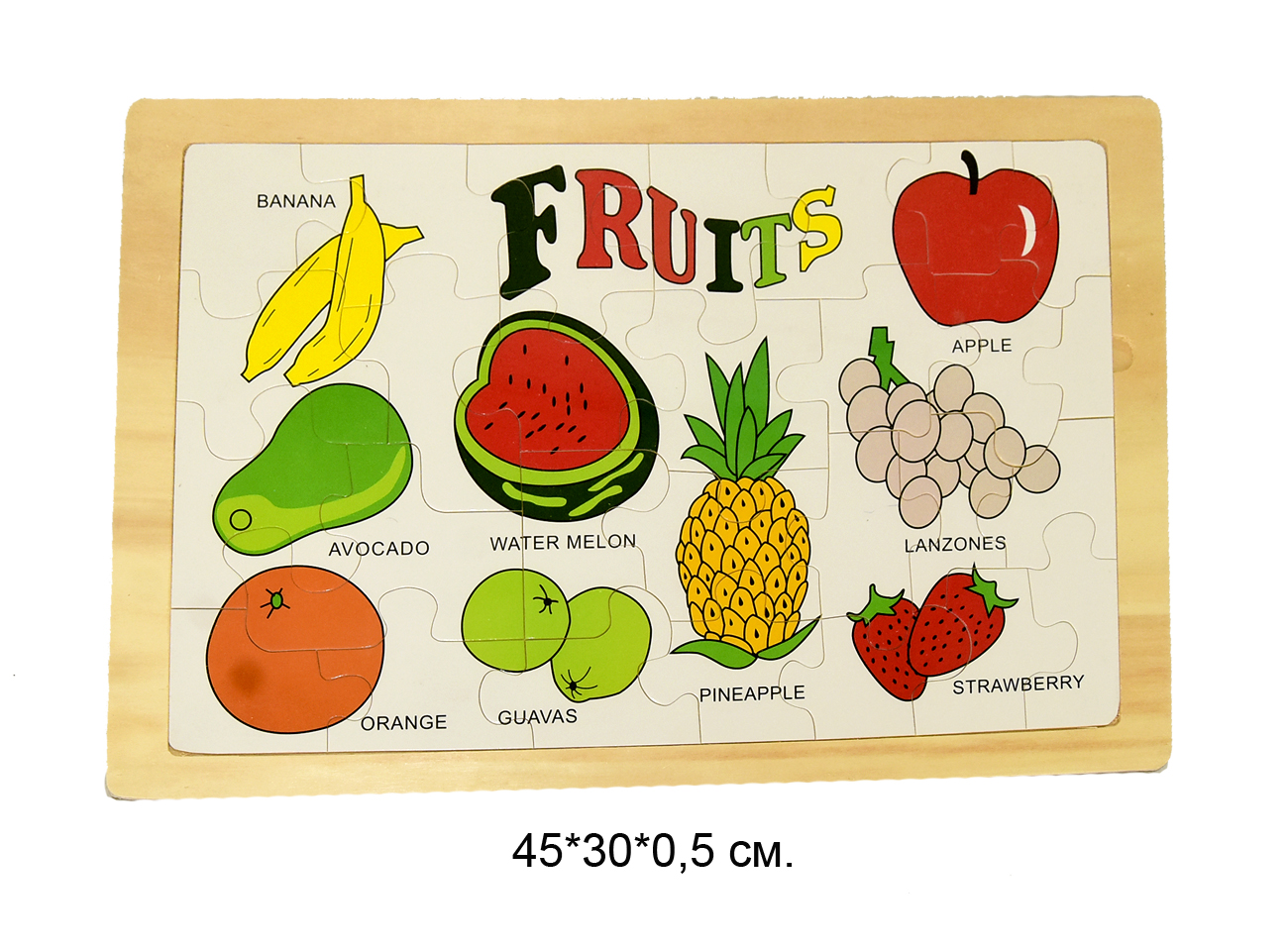 Деревянная игрушка арт. 92-7 Пазл "Фрукты" в пленке_Развивающая игрушка выполнена из качественных материалов.