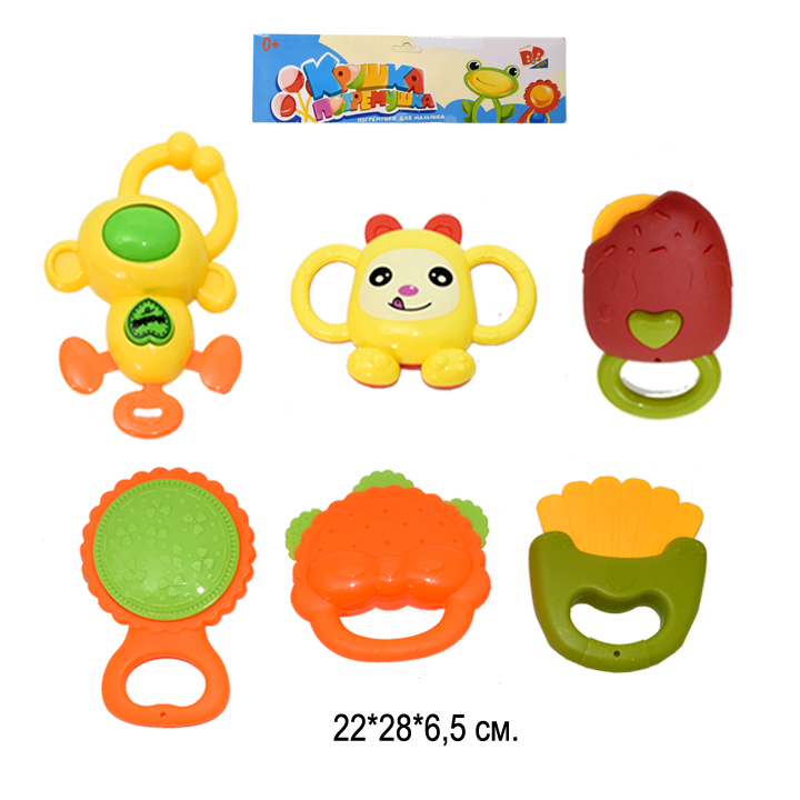 Погремушка арт. 508-32" Набор 6 шт. 22*6,5*28 /120шт.//бл.60/Звук в данной модели появляется при встряхивании. Причудливая форма надолго займёт внимание карапуза. Лёгкую вещицу удобно держать в маленьких ладошках, на ручке есть рельефные элементы.
