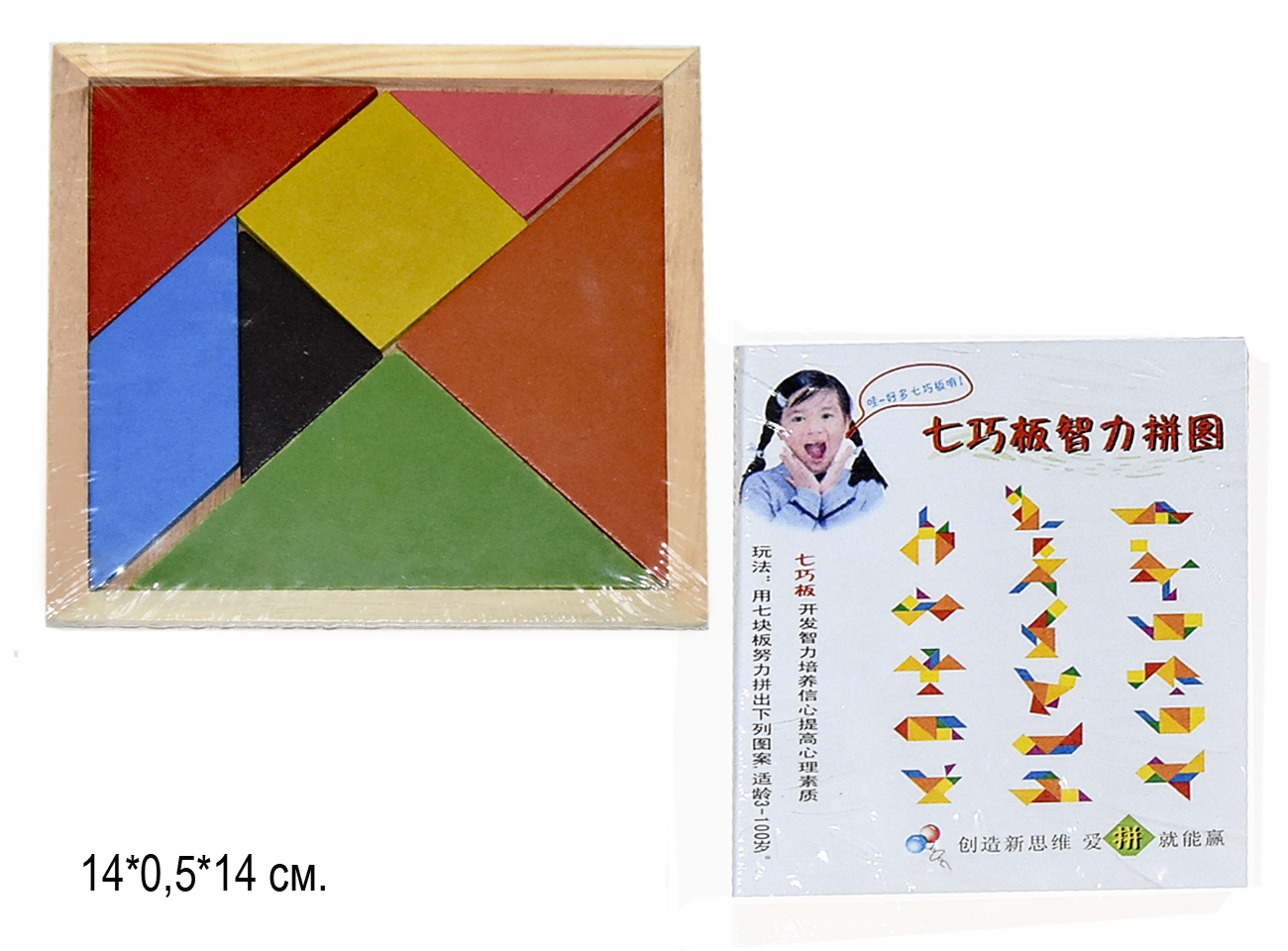Упаковка: квадратная рамка с геометрическими фигурами в пленке.
