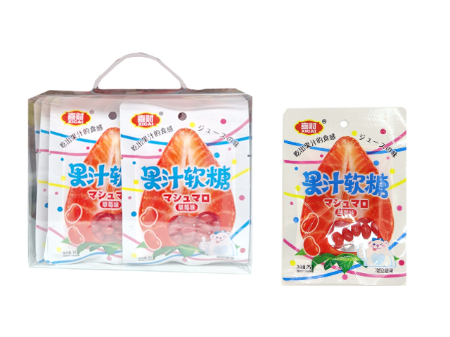 Конфета арт. 081405-3 Жевательные бобы "Клубника" 35 г 20 шт. в прозрачной кор.'