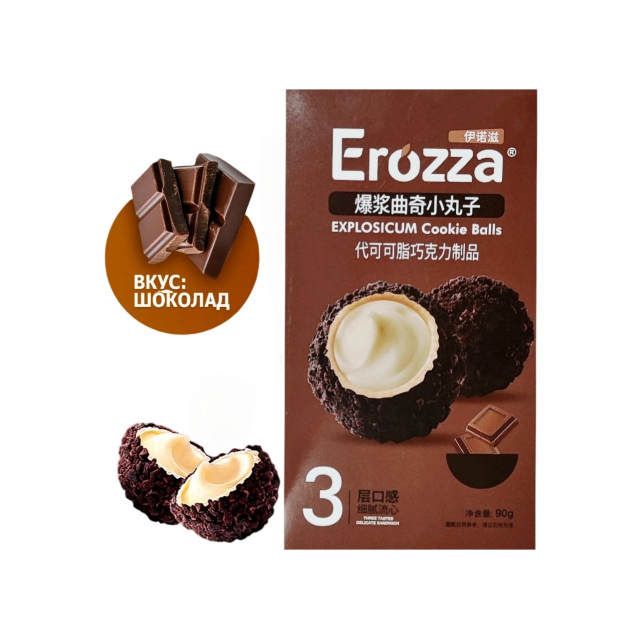 Печенье арт. 140752 Вафельный шарик с начинкой вкус "Шоколад" 90 г в кор.*