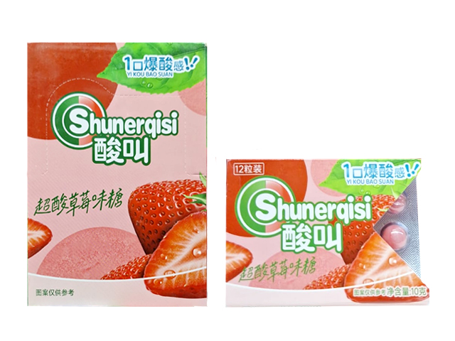 Конфета арт. 112901/112840 Суперкислая "Клубника" 10 г на листе 30 шт. в кор.*