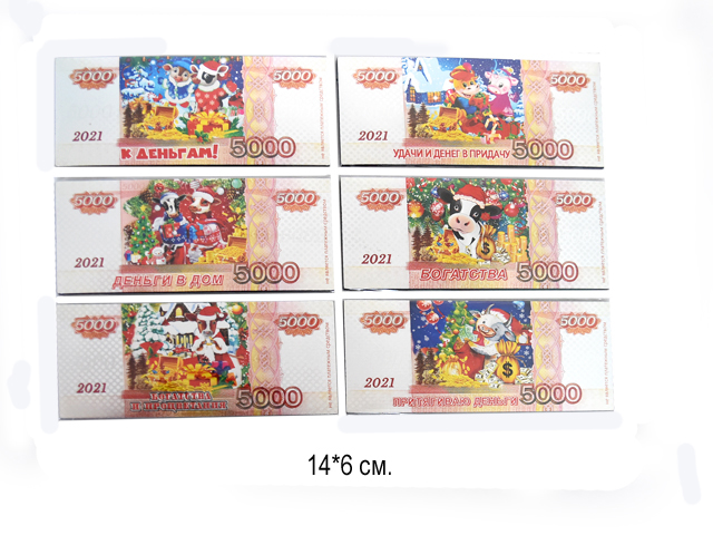 Магнит арт. 1-M "Купюра металлик" 1шт. в ассортим. (60 шт.)